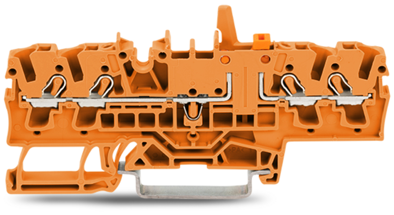 złączka rozłączalno-pomiarowa 4-przewodowa; z mechaniczną blokadą; z możliwością pomiaru; uchwyt łącznika nożowego pomarańczowy; na szynę TS 35 x 15 i 35 x 7,5; 2,5 mm²; Push-in CAGE CLAMP®; 2,50 mm²; pomarańczowy