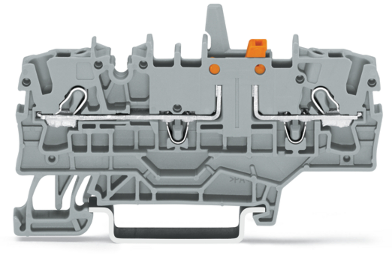 złączka rozłączalno-pomiarowa 2-przewodowa; z mechaniczną blokadą; z dodatkowym mostkowaniem; uchwyt łącznika nożowego pomarańczowy; na szynę TS 35 x 15 i 35 x 7,5; 2,5 mm²; Push-in CAGE CLAMP®; 2,50 mm²; pomarańczowy