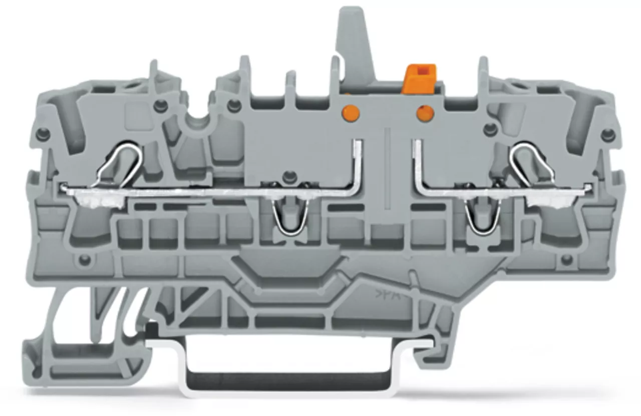 złączka rozłączalno-pomiarowa 2-przewodowa; z mechaniczną blokadą; z dodatkowym mostkowaniem; uchwyt łącznika nożowego pomarańczowy; do zastosowań Ex i; na szynę TS 35 x 15 i 35 x 7,5; 2,5 mm²; Push-in CAGE CLAMP®; 2,50 mm²; niebieski