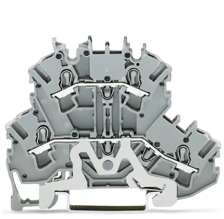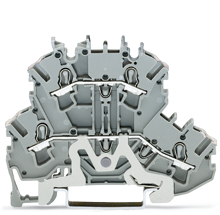 złączka 2-piętrowa; złączka do ekranu/przelotowa; 2,5 mm²; ekranowanie/L; bez podstawki oznacznika; na szynę TS 35 x 15 i 35 x 7,5; Push-in CAGE CLAMP®; 2,50 mm²; szary