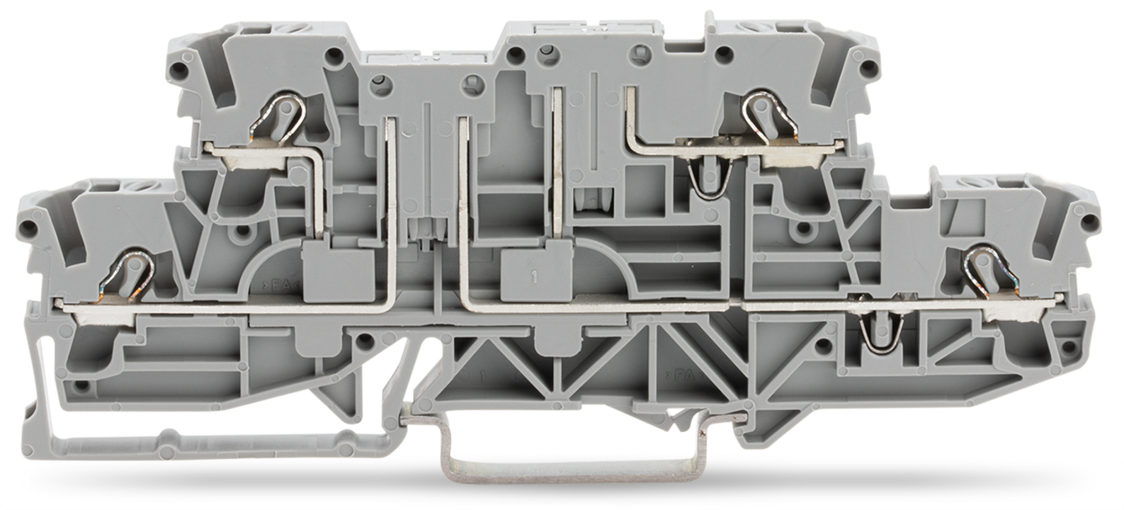 złączka 2-piętrowa; złączka przelotowa 4-przewodowa; na szynę TS 35 x 15 i 35 x 7,5; 2,5 mm²; Push-in CAGE CLAMP®; 2,50 mm²; szary