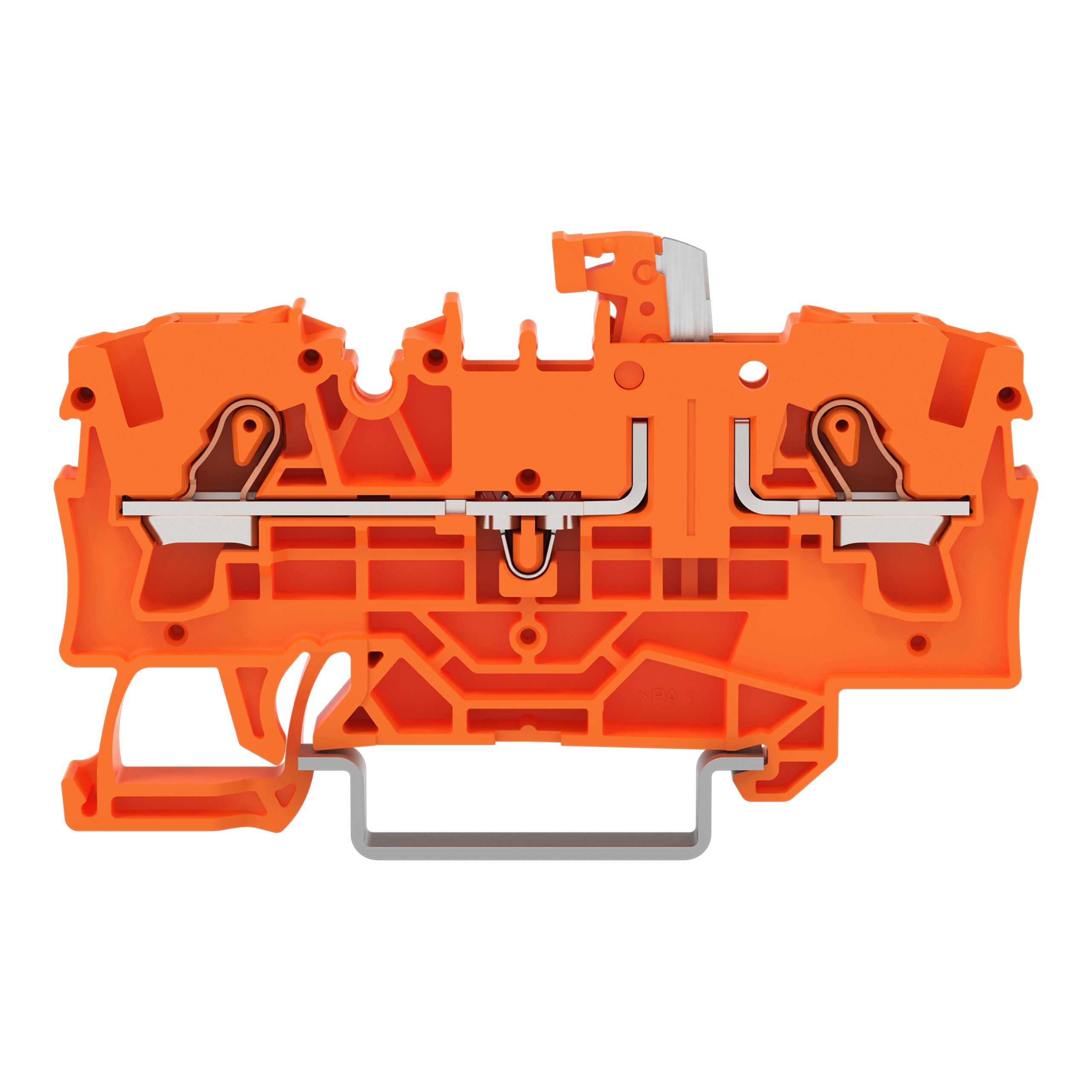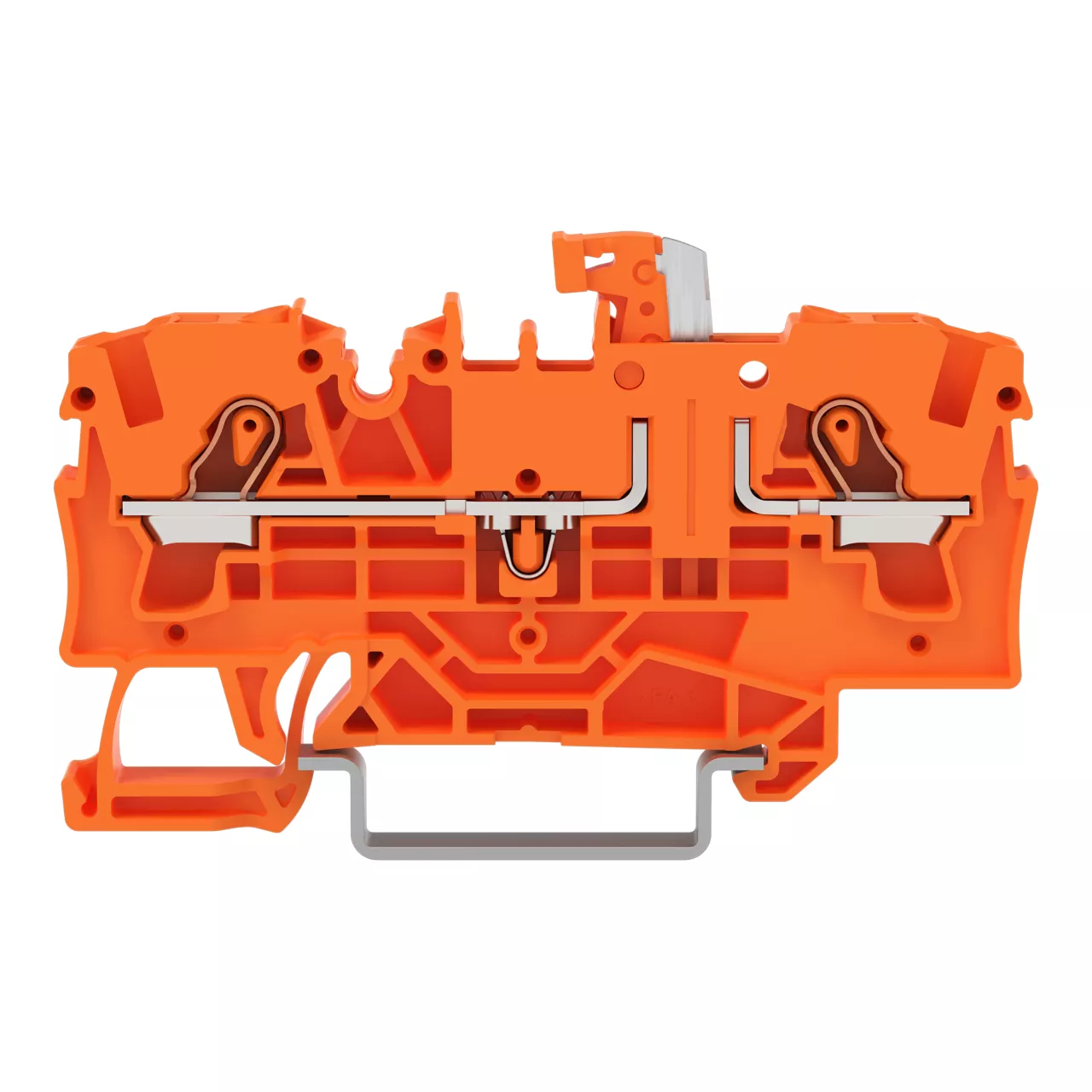złączka rozłączalna 2-przewodowa; z uchylnym łącznikiem nożowym; z możliwością pomiaru; uchwyt łącznika nożowego pomarańczowy; na szynę TS 35 x 15 i 35 x 7,5; 4 mm²; Push-in CAGE CLAMP®; 4,00 mm²; pomarańczowy