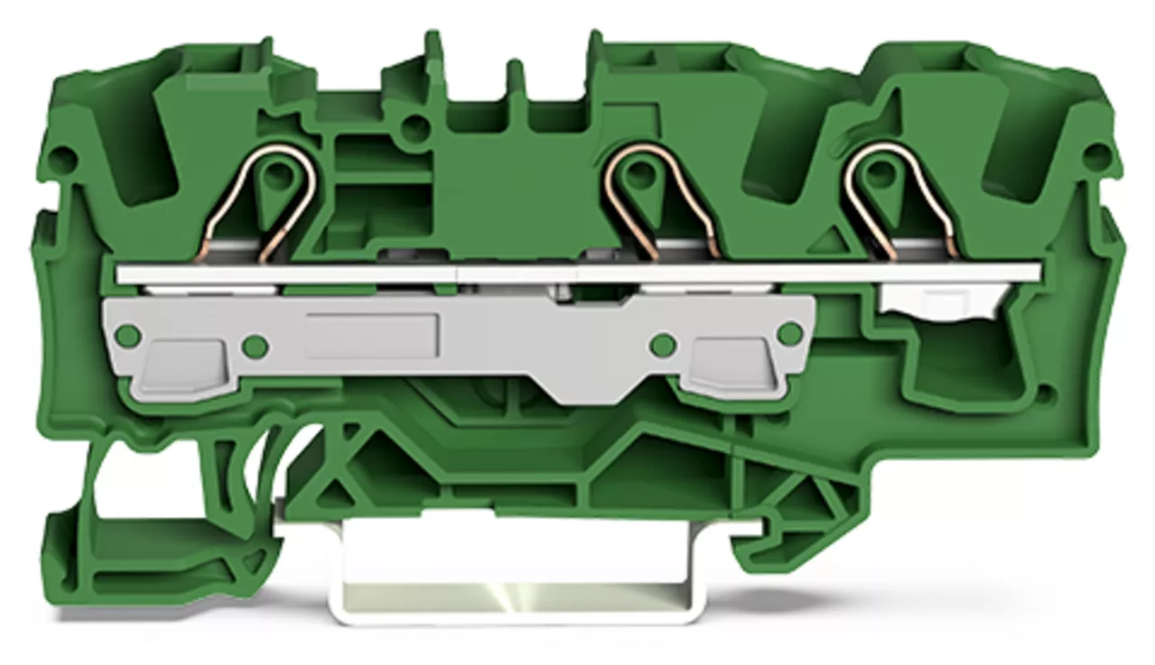 złączka przelotowa 3-przewodowa; 6 mm²; do zastosowań Ex e II; opis z boku i na środku; na szynę TS 35 x 15 i 35 x 7,5; Push-in CAGE CLAMP®; 6,00 mm²; zielony