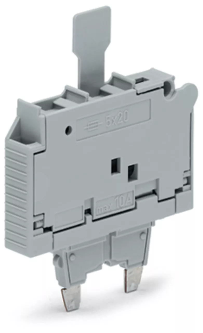 wtyk bezpiecznikowy; z uchwytem; do wkładki bezpiecznikowej aparatowej 5 x 20 mm; z sygnalizacją optyczną; 12 - 30 V; szerokość 7,4 mm; szary