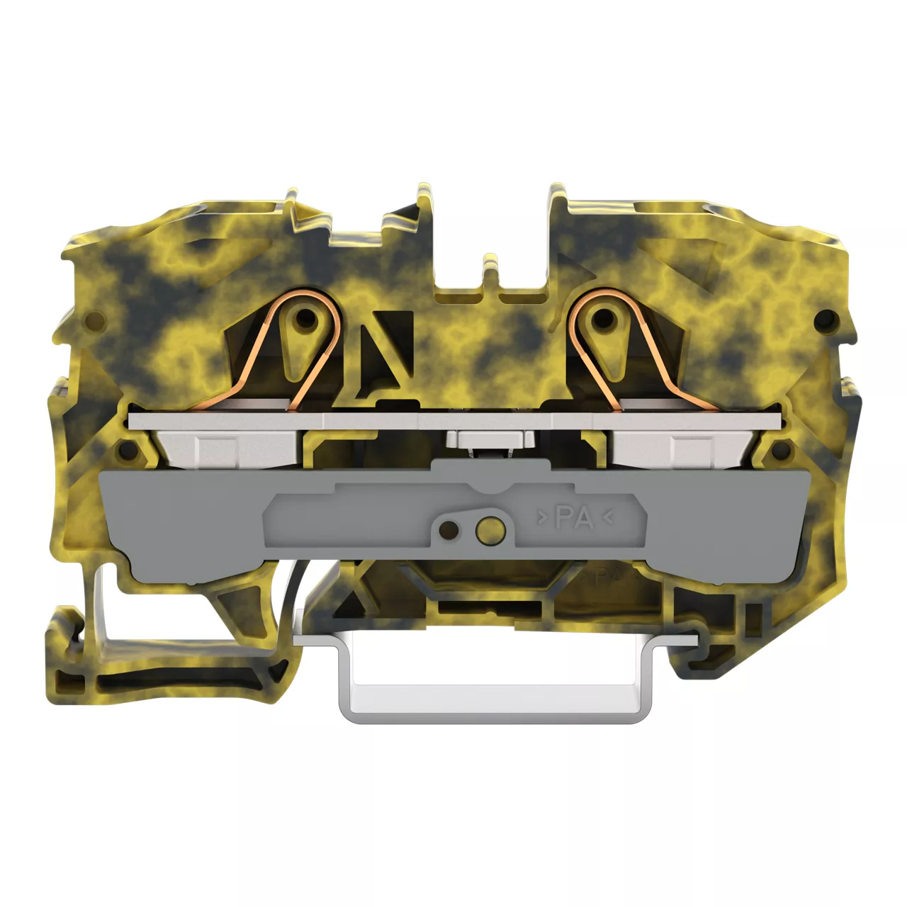 złączka przelotowa 2-przewodowa; 10 mm²; do zastosowań Ex e II; opis z boku i na środku; na szynę TS 35 x 15 i 35 x 7,5; Push-in CAGE CLAMP®; 10,00 mm²; ciemnoszary-żółty