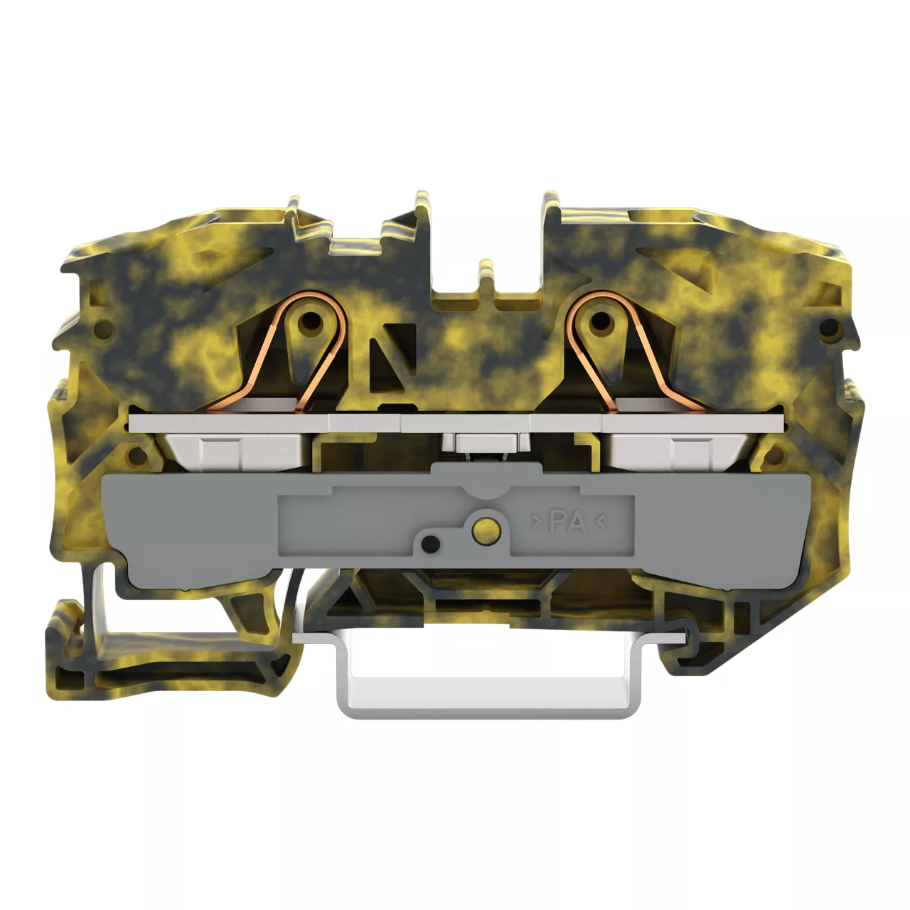 złączka przelotowa 2-przewodowa; 16 mm²; do zastosowań Ex e II; opis z boku i na środku; na szynę TS 35 x 15 i 35 x 7,5; Push-in CAGE CLAMP®; 16,00 mm²; ciemnoszary-żółty