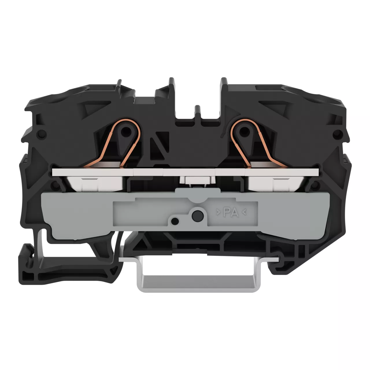 złączka przelotowa 2-przewodowa; 16 mm²; do zastosowań Ex e II; opis z boku i na środku; na szynę TS 35 x 15 i 35 x 7,5; Push-in CAGE CLAMP®; 16,00 mm²; czarny