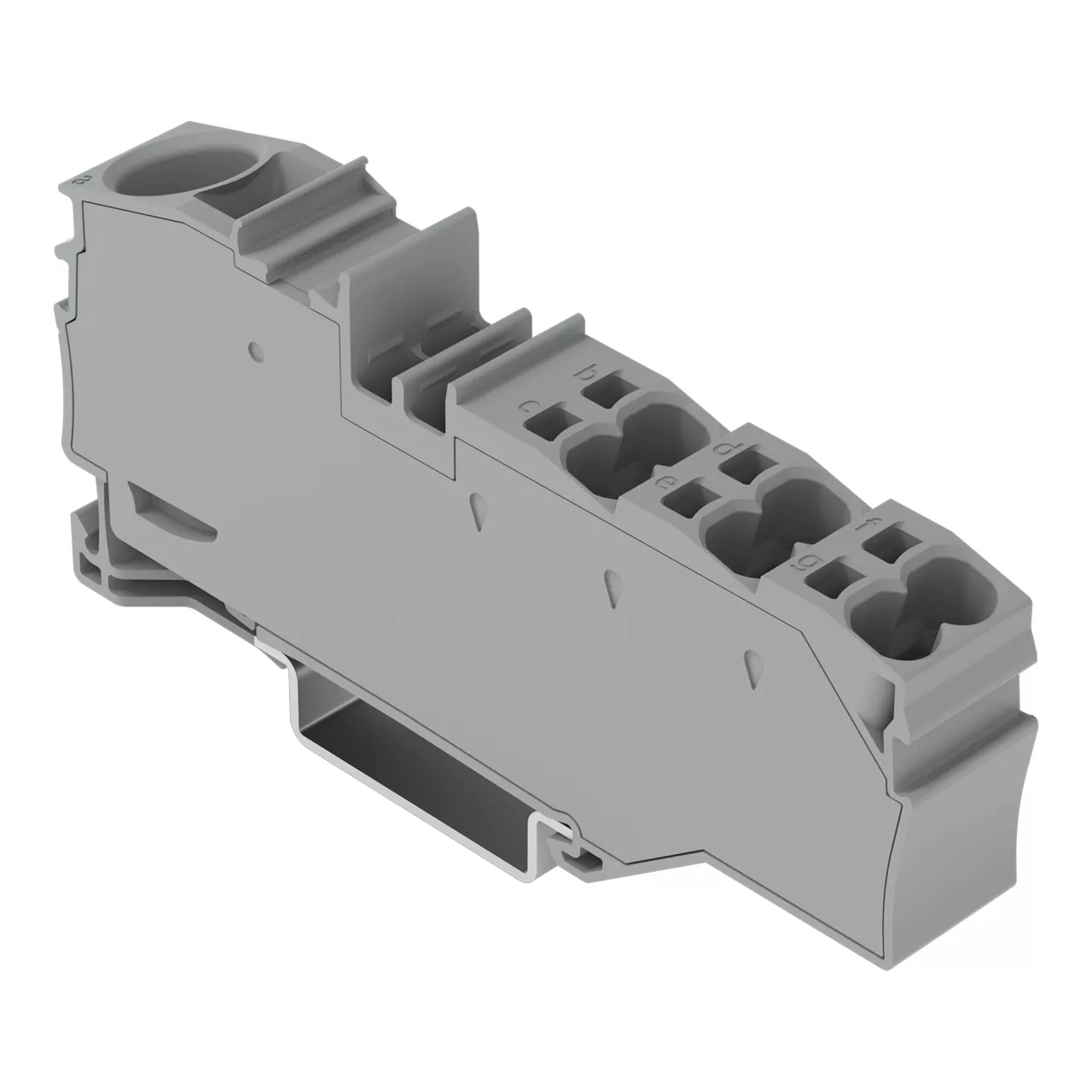 złączka rozgałęźna; z otworem montażowym; 1 x 16 mm² / 6 x 4 mm²; ze zintegrowaną ścianką końcową; do zastosowań Ex e II; opis z boku i na środku; na szynę TS 35 x 15 i 35 x 7,5; Push-in CAGE CLAMP®; 16,00 mm²; szary
