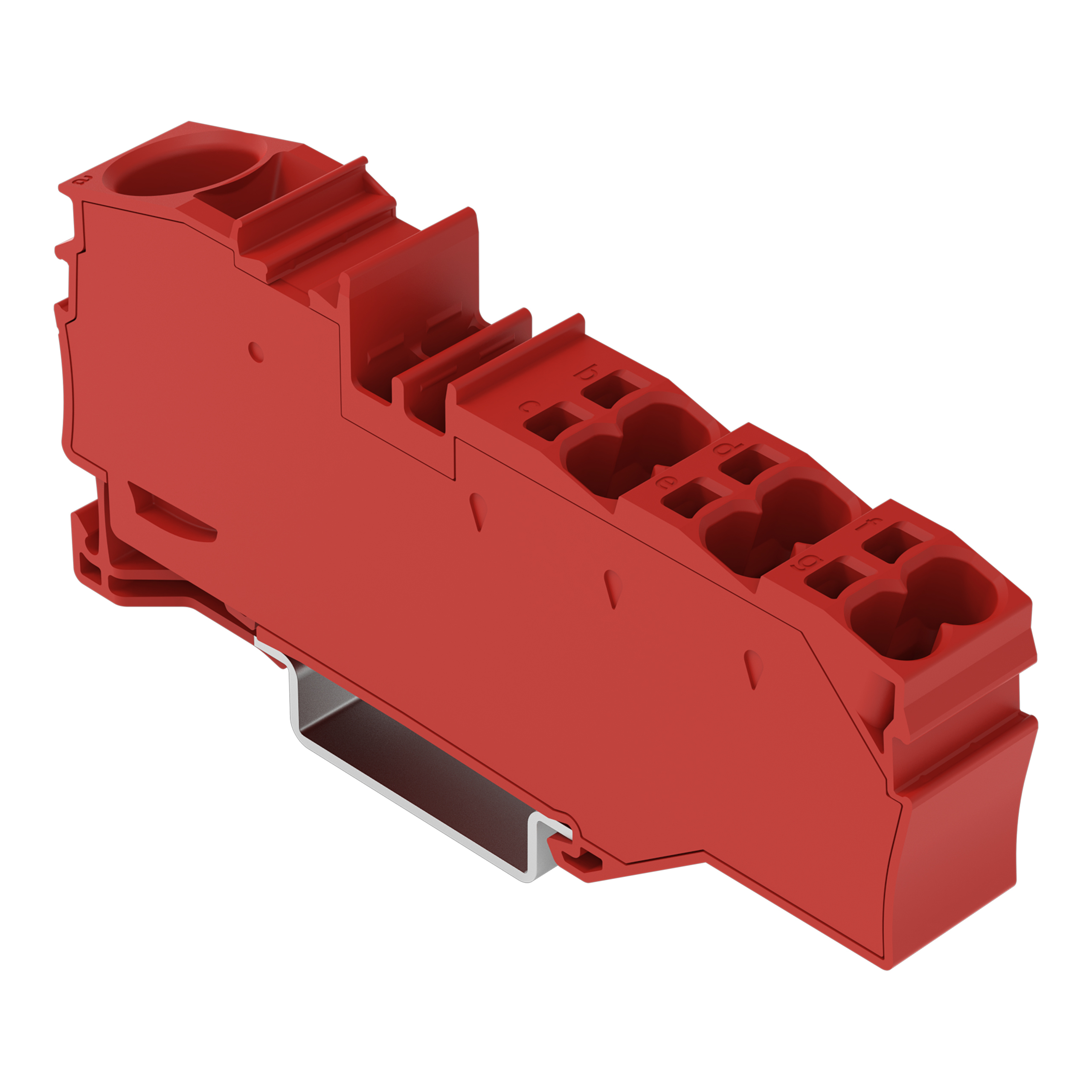 złączka rozgałęźna; z otworem montażowym; 1 x 16 mm² / 6 x 4 mm²; ze zintegrowaną ścianką końcową; do zastosowań Ex e II; opis z boku i na środku; na szynę TS 35 x 15 i 35 x 7,5; Push-in CAGE CLAMP®; 16,00 mm²; czerwony