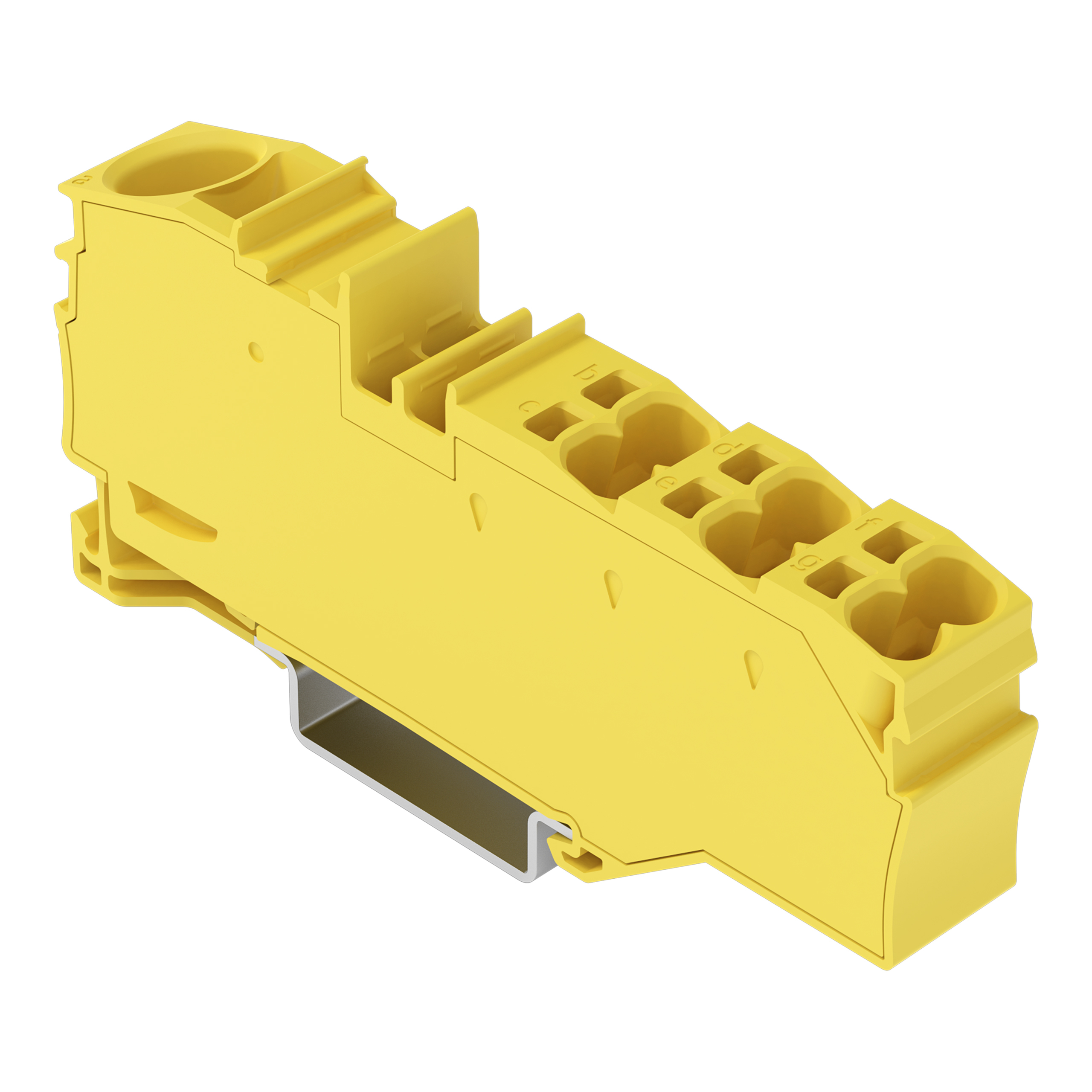złączka rozgałęźna; z otworem montażowym; 1 x 16 mm² / 6 x 4 mm²; ze zintegrowaną ścianką końcową; do zastosowań Ex e II; opis z boku i na środku; na szynę TS 35 x 15 i 35 x 7,5; Push-in CAGE CLAMP®; 16,00 mm²; żółty