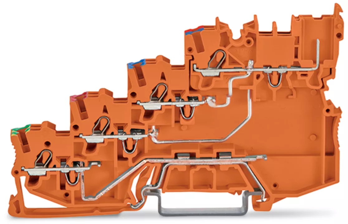 złączka zasilająca sygnałowa 4-piętrowa; typu PNP; z przyłączem PE; 1 mm²; Push-in CAGE CLAMP®; 1,00 mm²; pomarańczowy