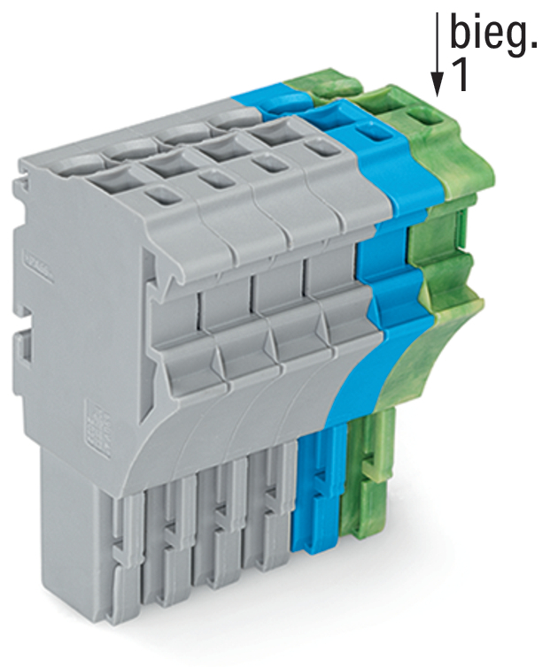 gniazdo 1-przewodowe; Push-in CAGE CLAMP®; 4 mm²; raster 5,2 mm; 6-bieg.; środkowy zaczep ryglujący; 4,00 mm²; szary/niebieski/żółto-zielony