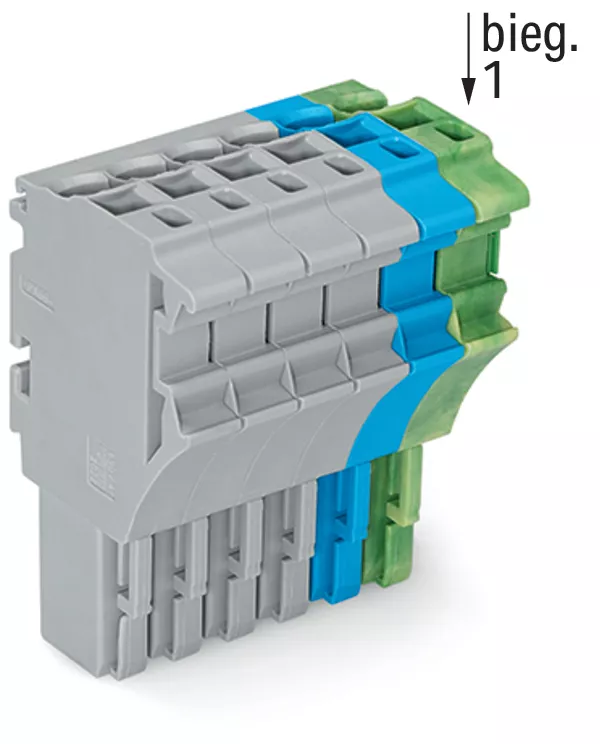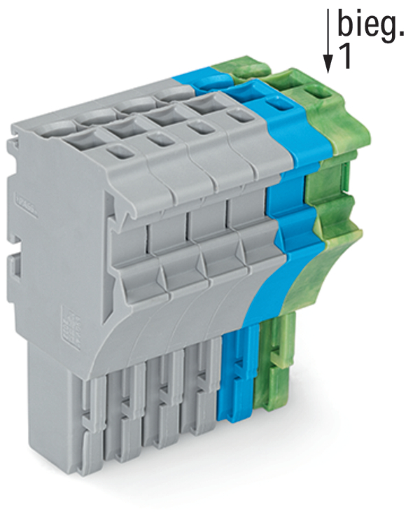 gniazdo 1-przewodowe; Push-in CAGE CLAMP®; 4 mm²; raster 5,2 mm; 6-bieg.; 4,00 mm²; szary/niebieski/żółto-zielony