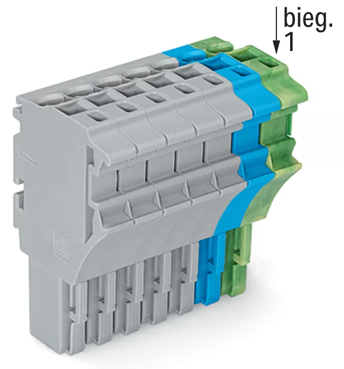 gniazdo 1-przewodowe; Push-in CAGE CLAMP®; 4 mm²; raster 5,2 mm; 8-bieg.; 4,00 mm²; szary/niebieski/żółto-zielony