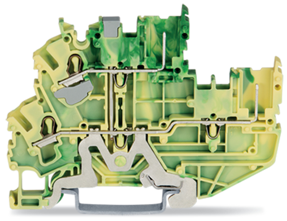 złączka bazowa 2-piętrowa 2-przewodowa/2-pinowa; złączka PE 2-przewodowa/2-pinowa; 2,5 mm²; PE; do zastosowań Ex nA; z mostkowaniem wewnętrznym; na szynę TS 35 x 15 i 35 x 7,5; Push-in CAGE CLAMP®; 2,50 mm²; żółto-zielony