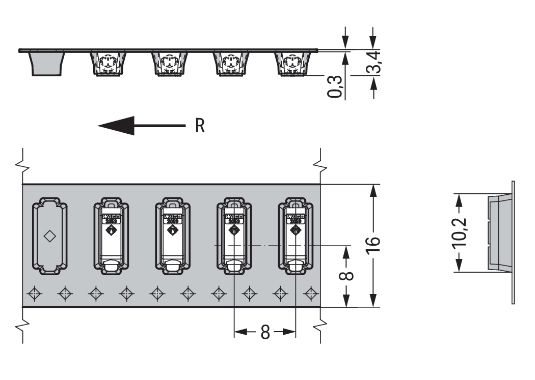 złączka SMD do PCB; 0,5 mm²; raster 3 mm; 1-bieg.; PUSH WIRE®; w rolce; biały