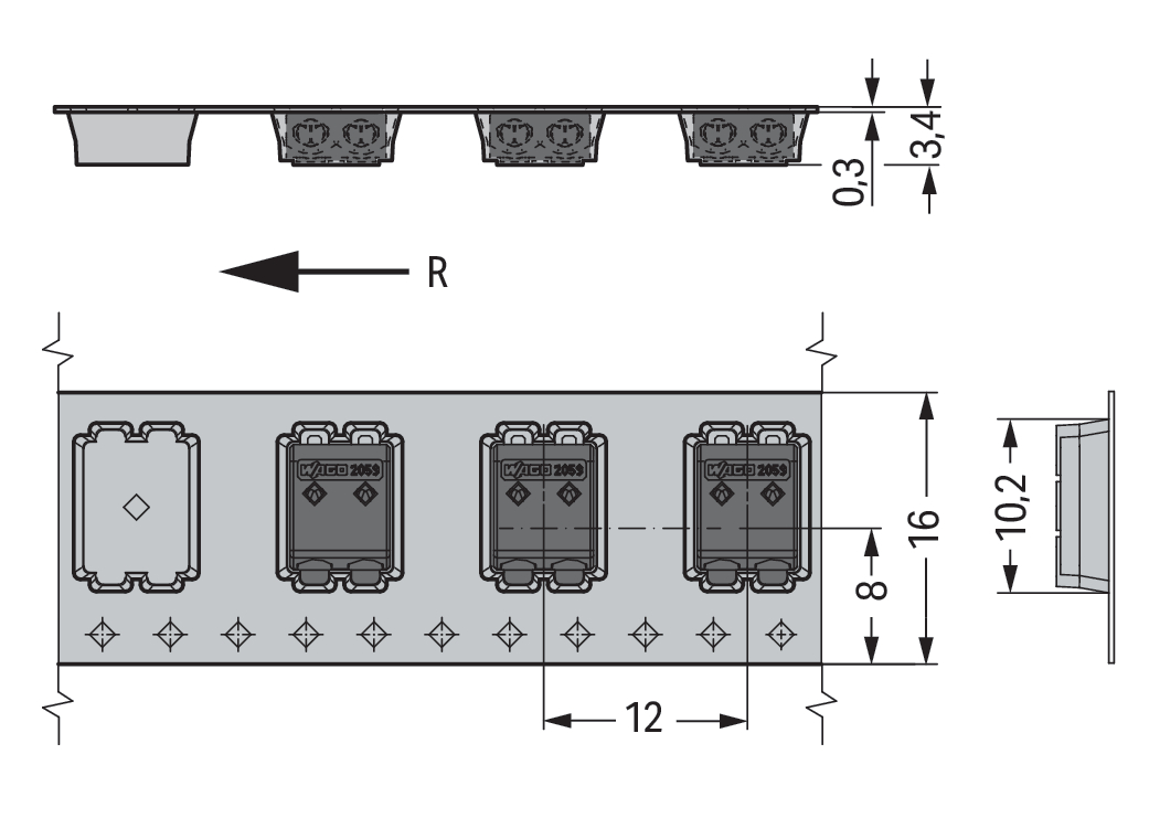 złączka SMD do PCB; 0,5 mm²; raster 3 mm; 2-bieg.; PUSH WIRE®; w rolce; czarny