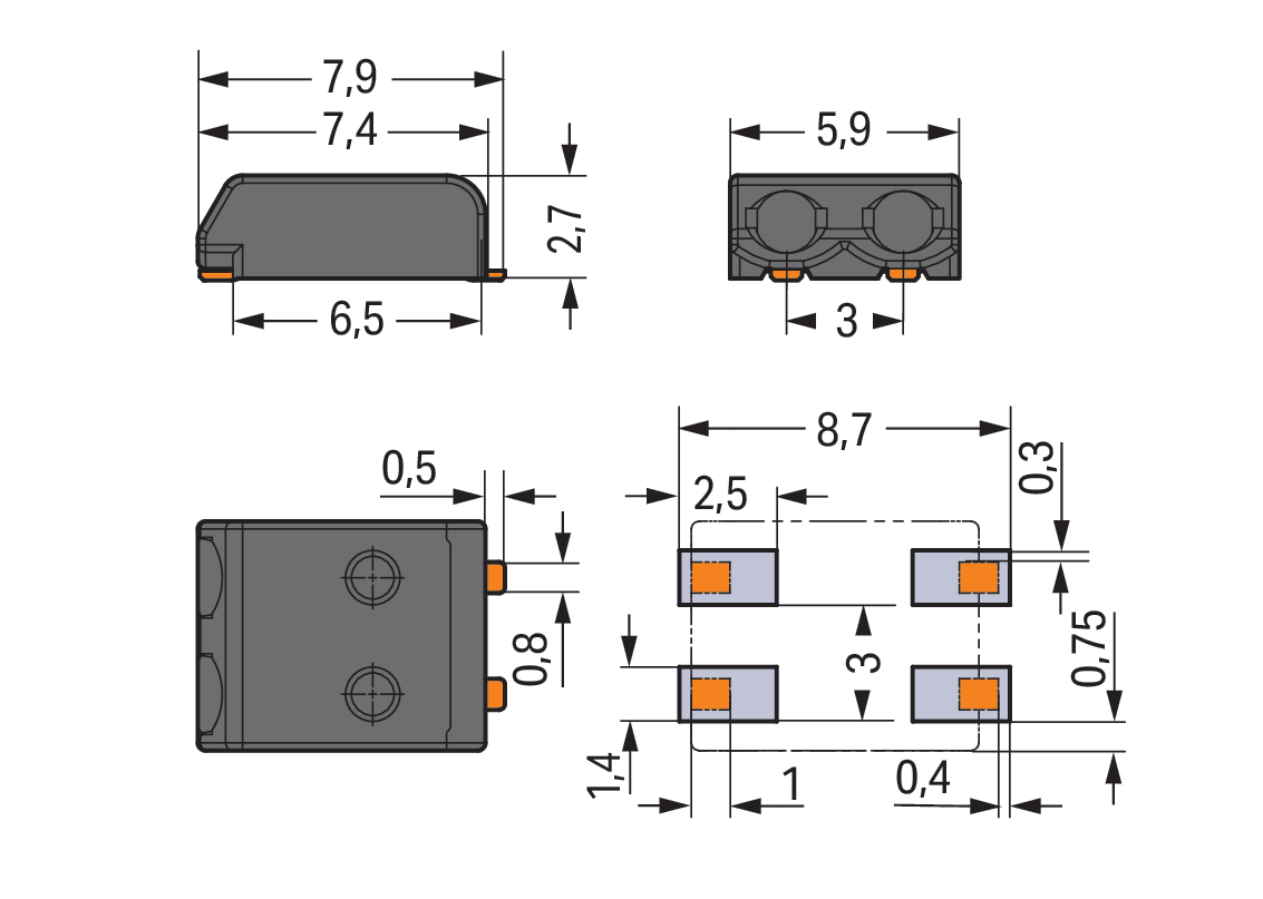 Złączka SMD do PCB 0,5 mm² raster 3 mm 2-bieg., czarny
