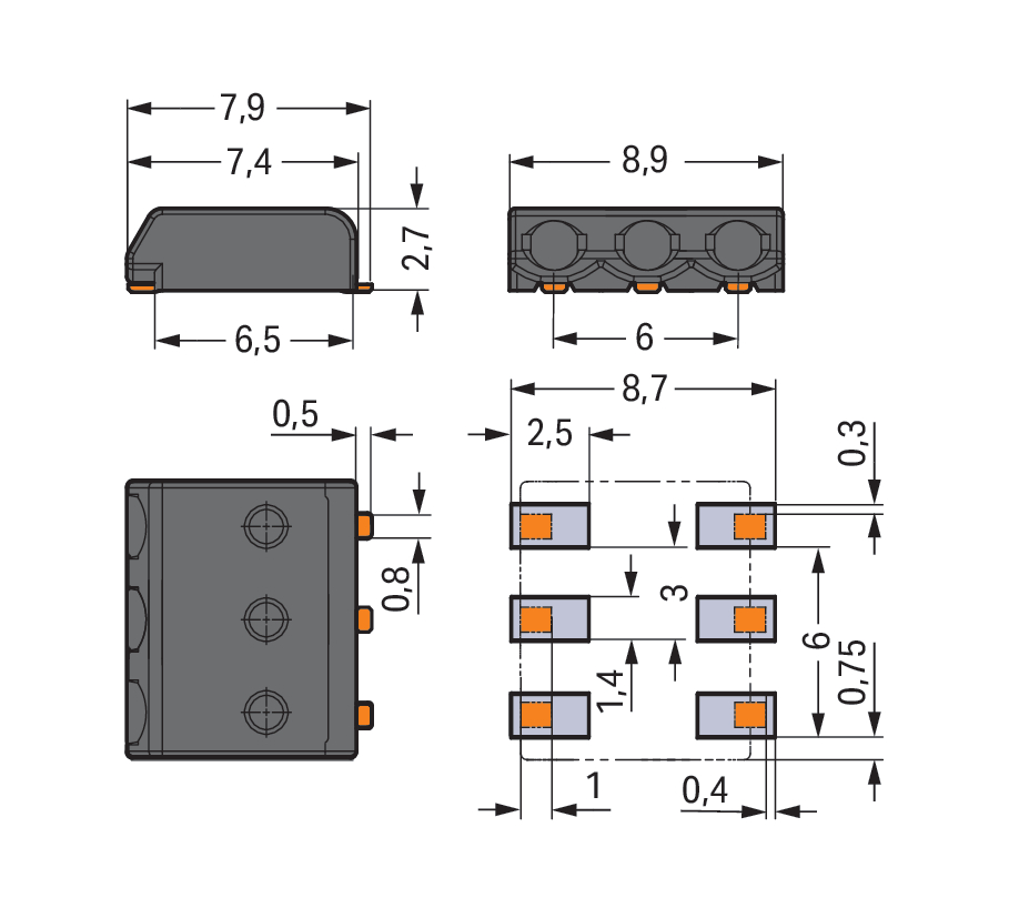 Złączka SMD do PCB 0,5 mm² raster 3 mm 3-bieg., czarny
