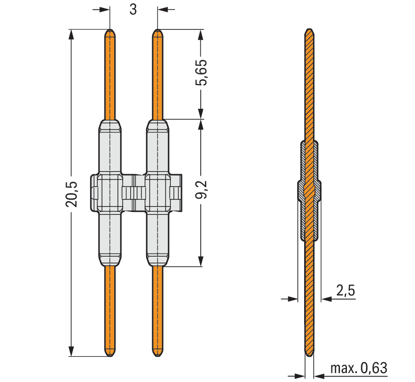 element łączeniowy; raster 3 mm; 1-bieg.; długość 20,5 mm; biały