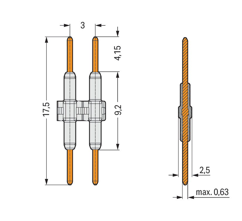 element łączeniowy; raster 3 mm; 2-bieg.; długość 17,5 mm; biały