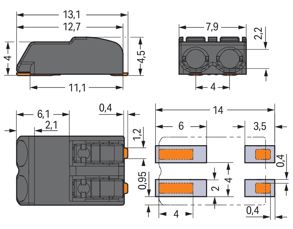 złączka SMD do PCB; przycisk; 0,75 mm²; raster 4 mm; 2-bieg.; Push-in CAGE CLAMP®; w rolce; czarny