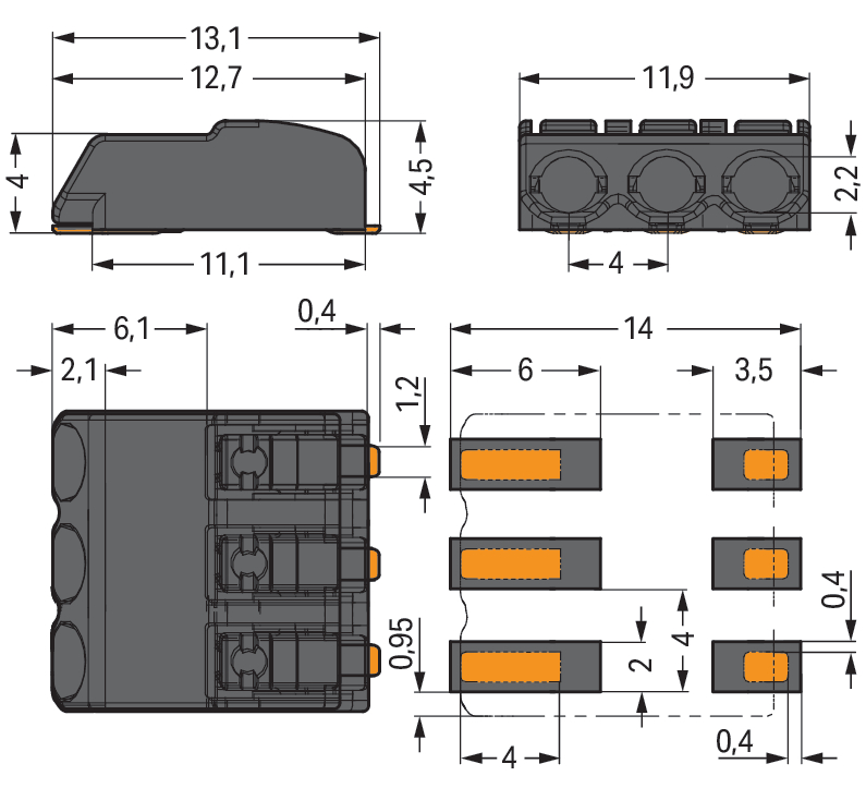 złączka SMD do PCB; przycisk; 0,75 mm²; raster 4 mm; 3-bieg.; Push-in CAGE CLAMP®; w rolce; czarny