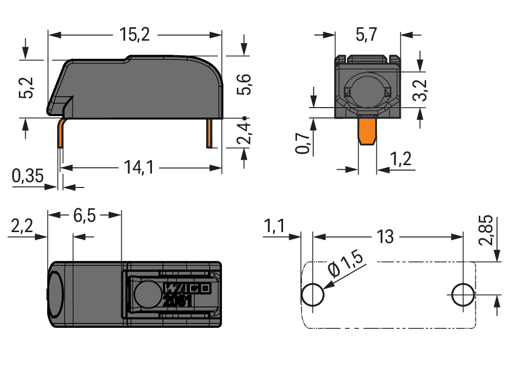 Złączka THR do płytek drukowanych przycisk 1,5 mm² raster 6mm 1-bieg., czarna