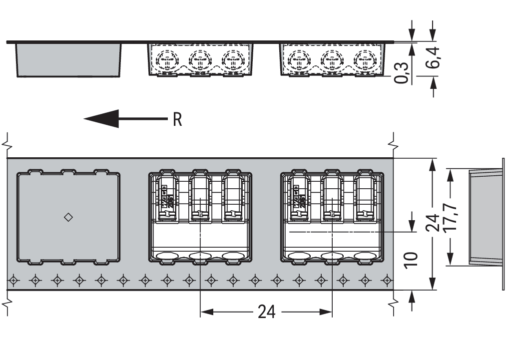 Złączka SMD do płytek drukowanych przycisk 1,5 mm² raster 6mm 3-bieg., biała