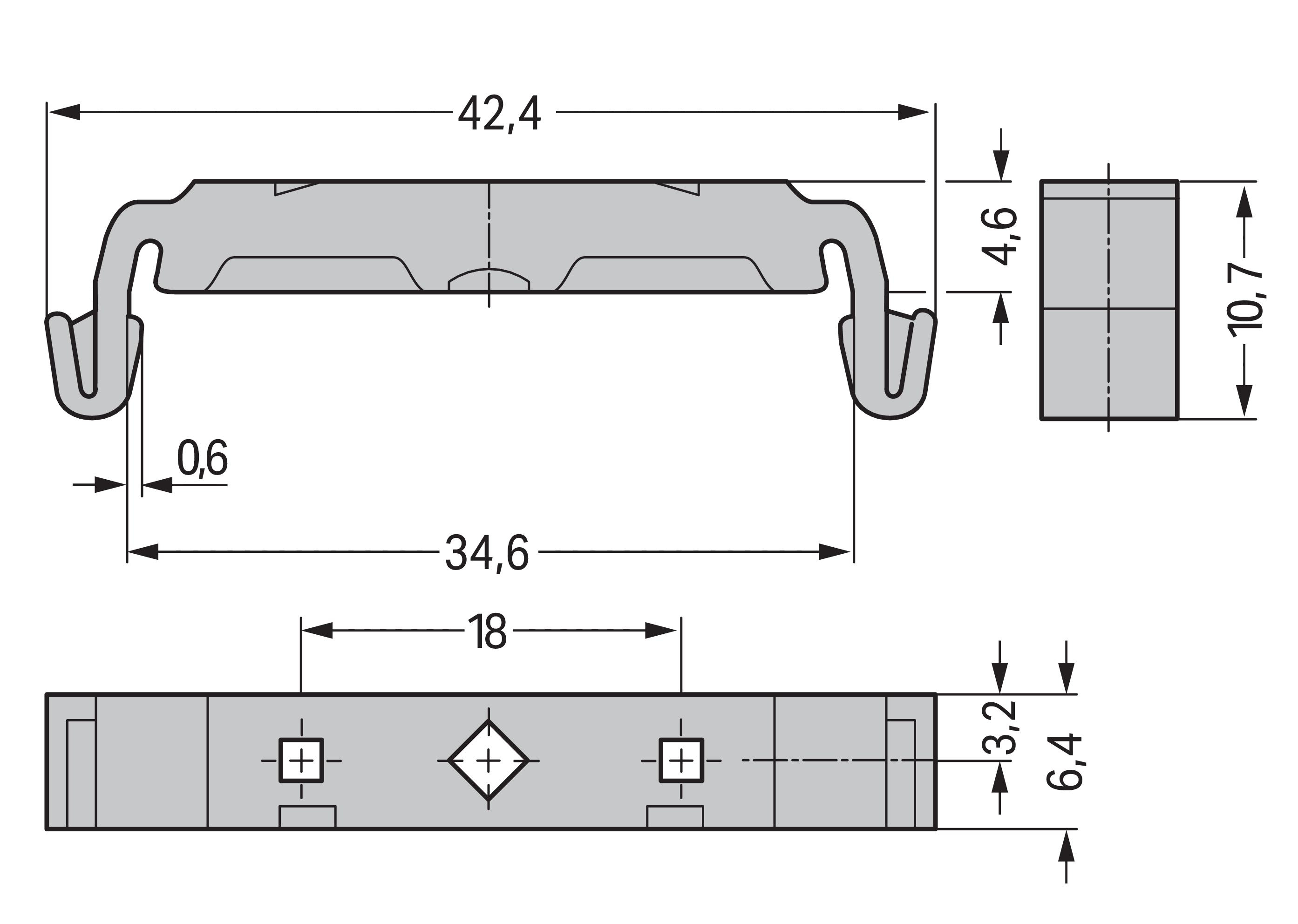 stopka montażowa; do złączek ze stopką zatrzaskową; do przykręcania do modułów przekaźnikowych; szerokość 6,4 mm; szary