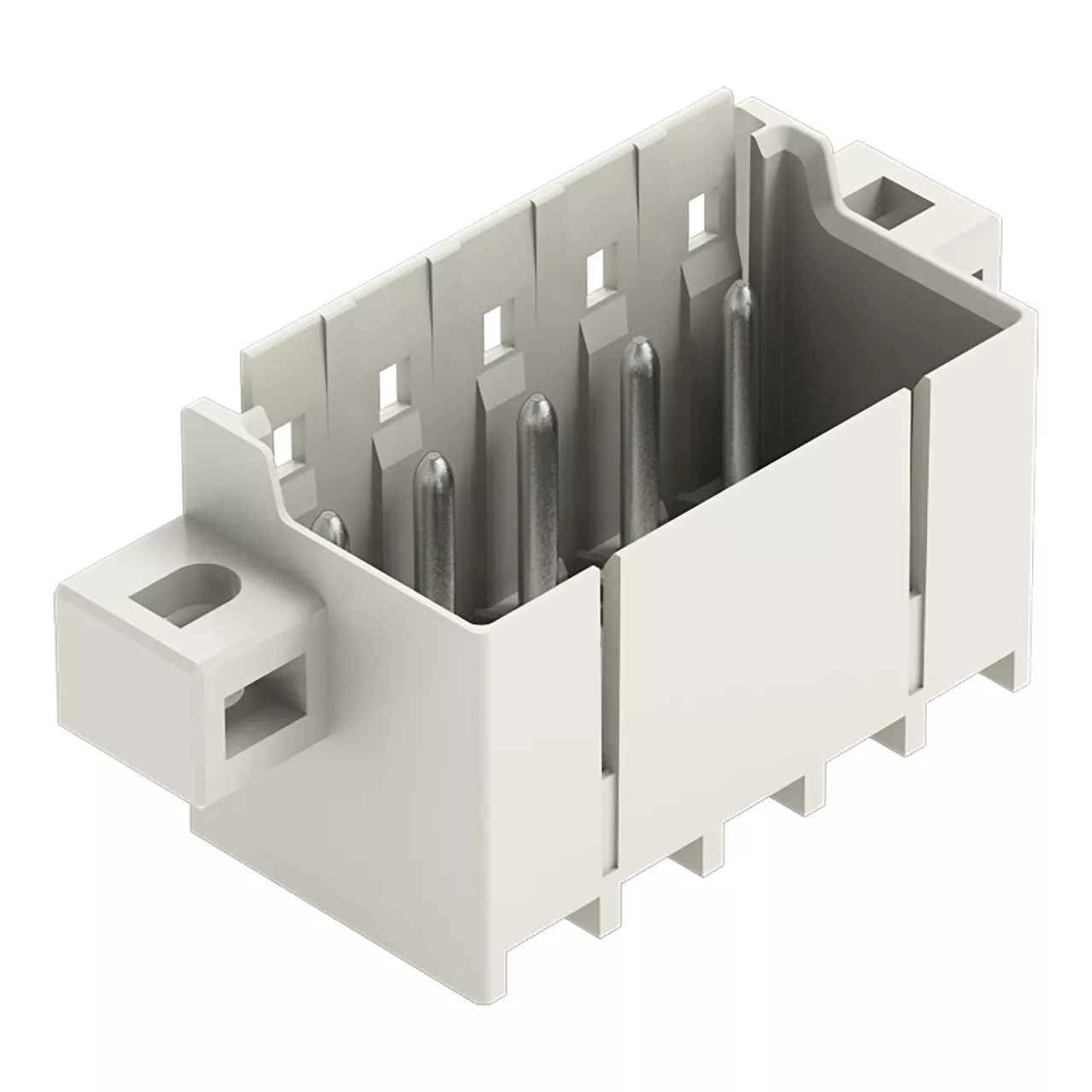 wtyk THR; pin lutowniczy Ø 1,4 mm; konstrukcja prosta; kołnierz mocujący; raster 5 mm; 5-bieg.; jasnoszary