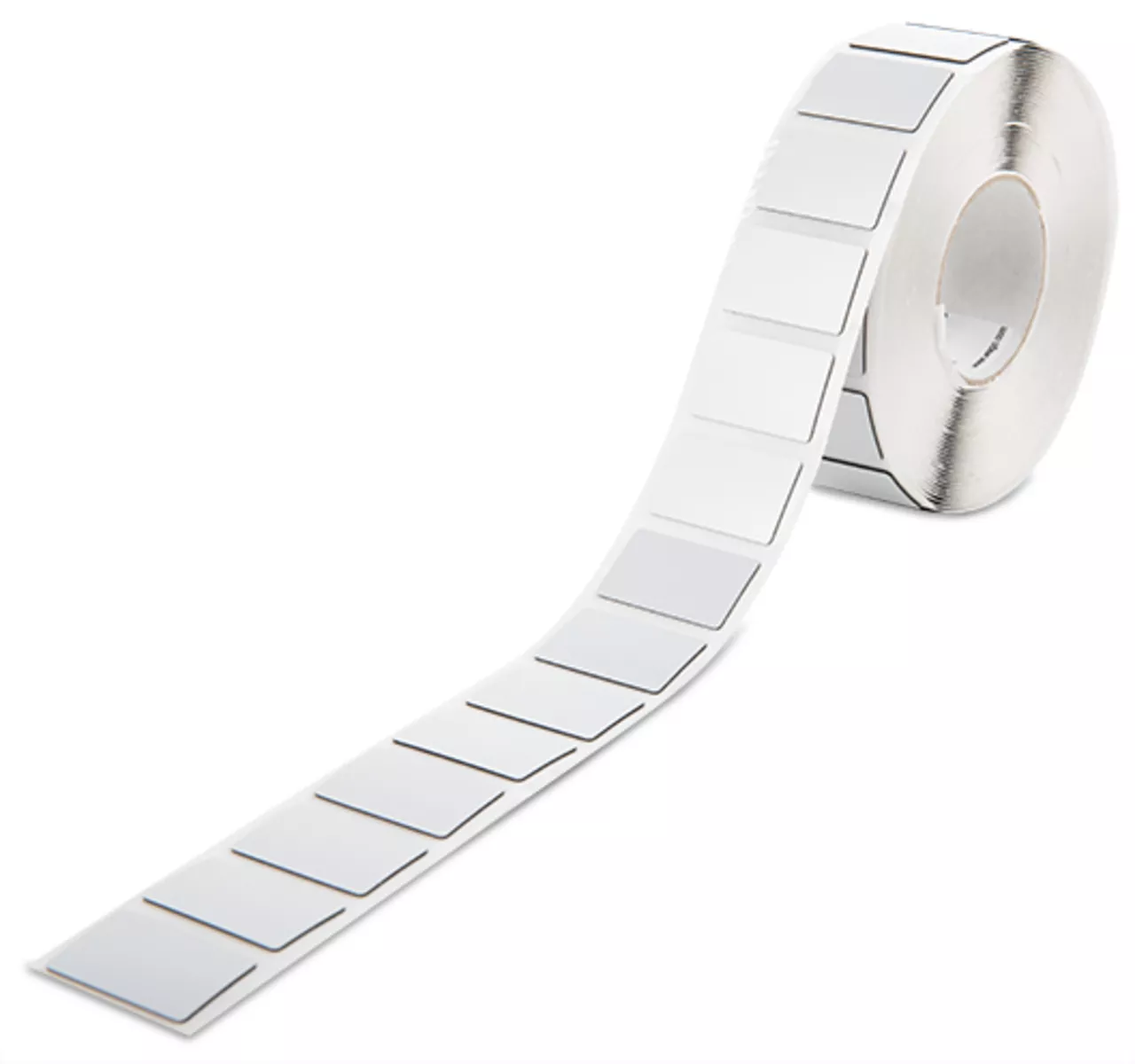 tabliczki na przycisk; do ramki, montażu zatrzask. lub klejenia; 27 x 17,5 mm; srebrny