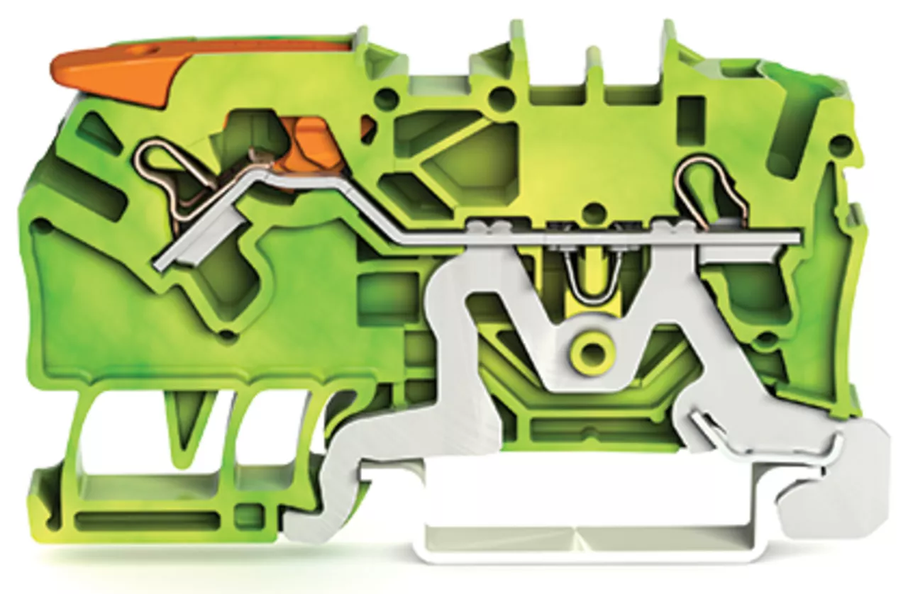 2-przewodowa złączka PE z dźwignią i Push-in CAGE CLAMP® 2,5 mm², żółto-zielony