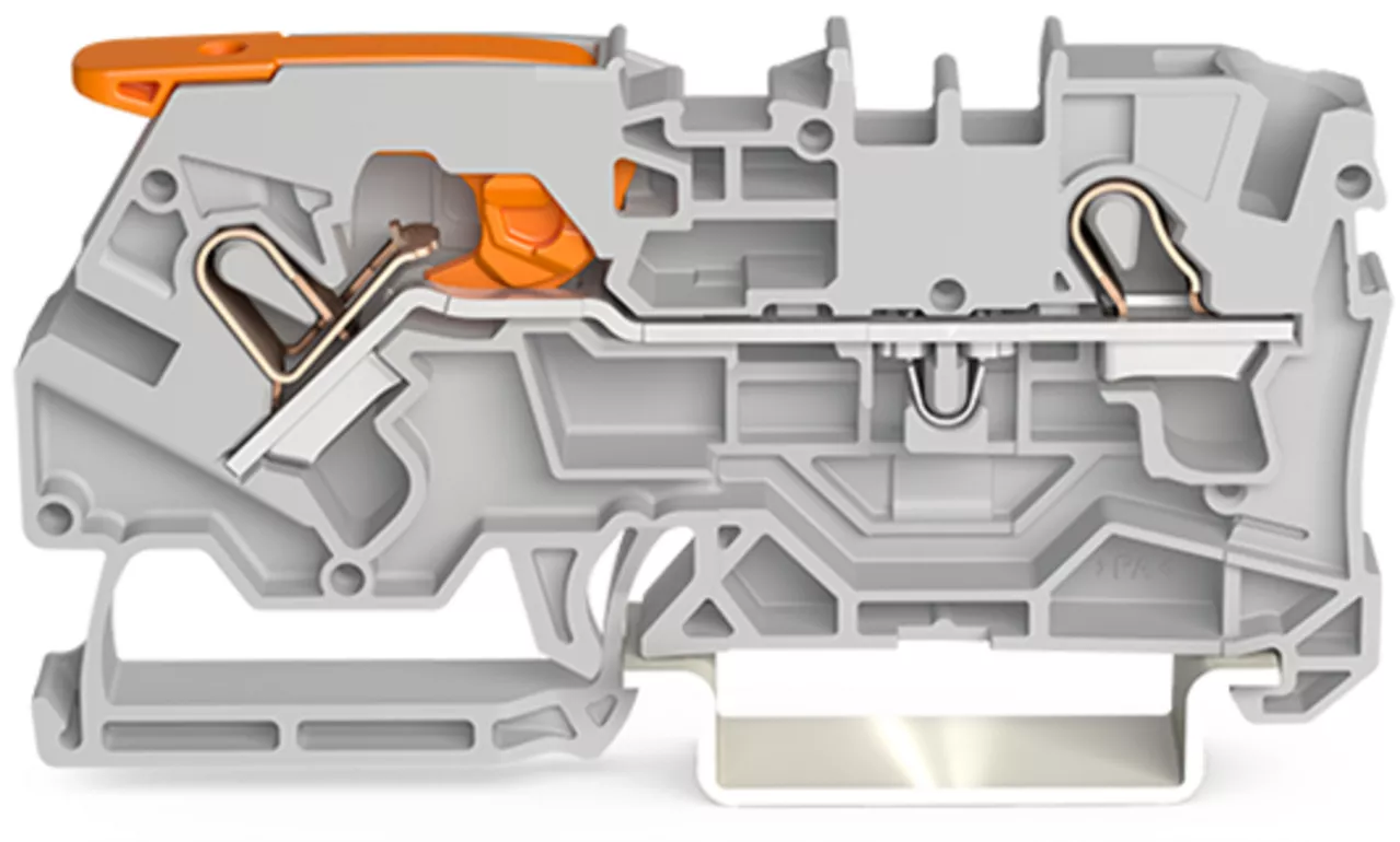 złączka przelotowa 2-przewodowa; z dźwignią i Push-in CAGE CLAMP®; 4 mm²; z otworem pomiarowym; opis z boku i na środku; na szynę TS 35 x 15 i 35 x 7,5; Push-in CAGE CLAMP®; 4,00 mm²; szary