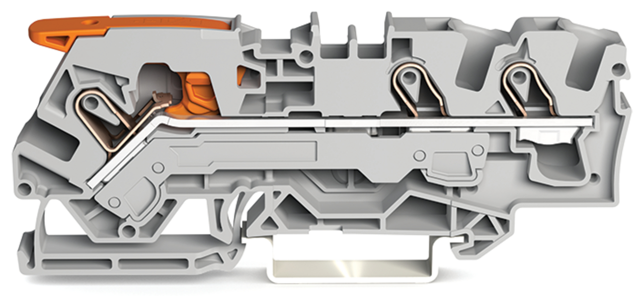 złączka przelotowa 3-przewodowa; z dźwignią i Push-in CAGE CLAMP®; 6 mm²; z otworem pomiarowym; opis z boku i na środku; na szynę TS 35 x 15 i 35 x 7,5; Push-in CAGE CLAMP®; 6,00 mm²; szary