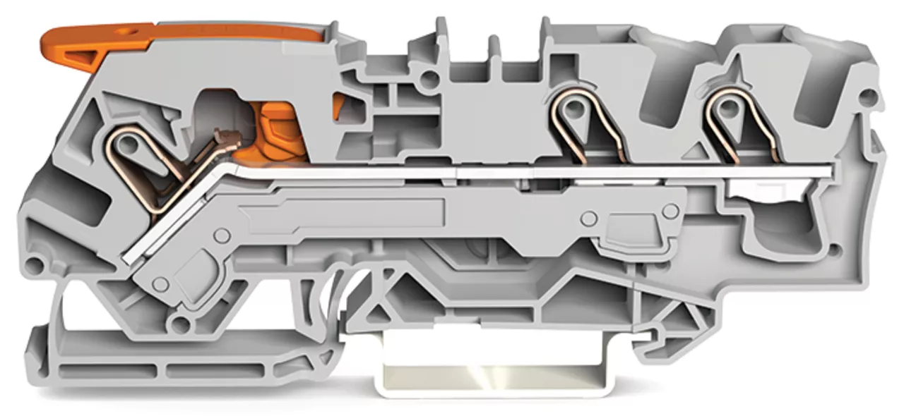 3-przewodowa złączka przelotowa z dźwignią i Push-in CAGE CLAMP® 6 mm², szara