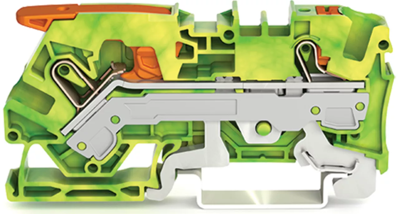 2-przewodowa złączka PE z dźwignią i przyciskiem 6 mm², żółto-zielony