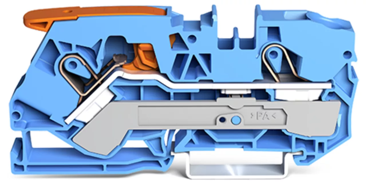 2-przewodowa złączka przelotowa z dźwignią i Push-in CAGE CLAMP® 10 mm², niebieska
