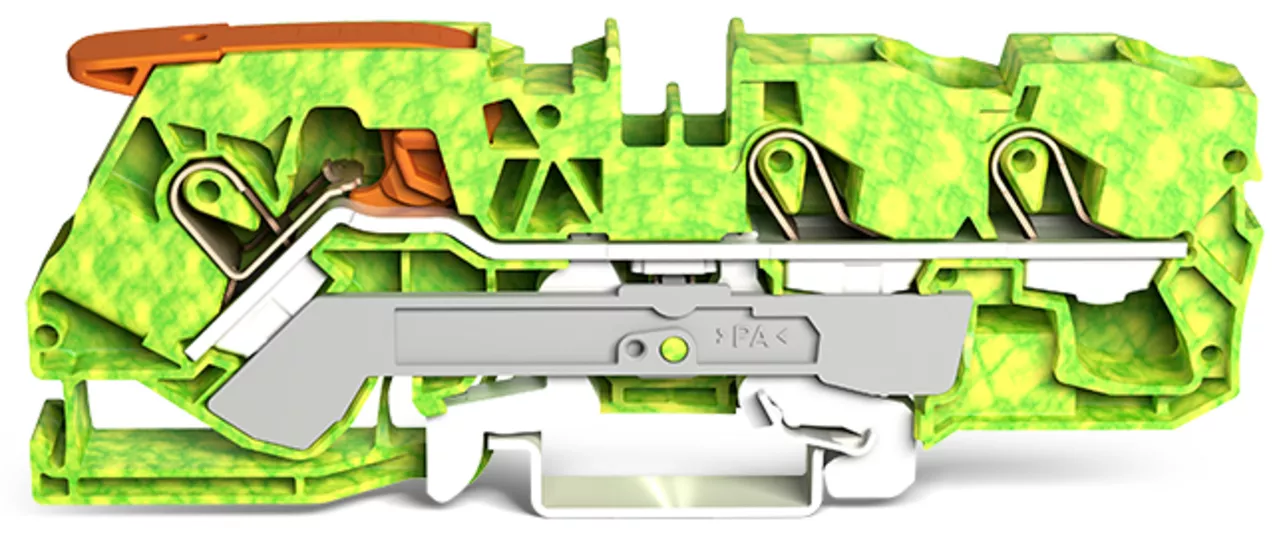 3-przewodowa złączka PE z dźwignią i Push-in CAGE CLAMP® 10 mm², żółto-zielony