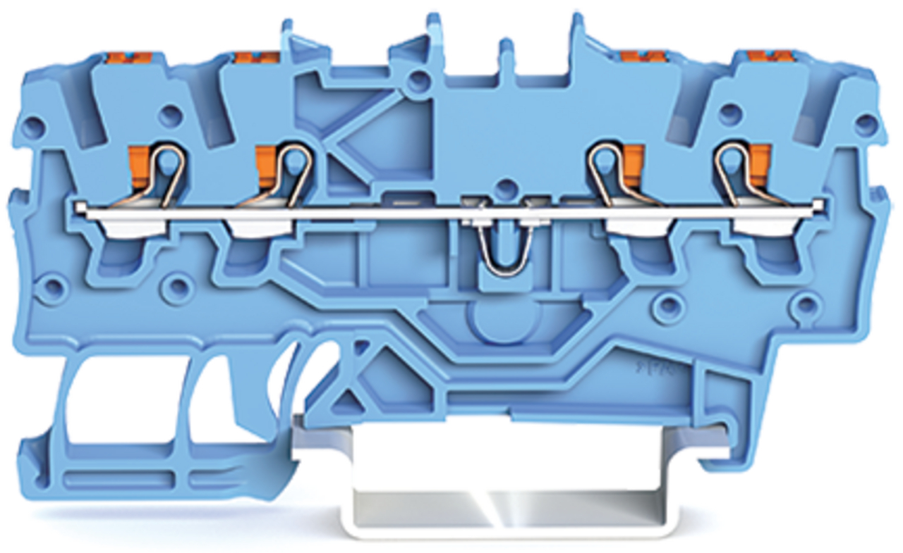 złączka przelotowa 4-przewodowa; z przyciskami; 1 mm²; z otworem pomiarowym; do zastosowań Ex i; opis z boku i na środku; na szynę TS 35 x 15 i 35 x 7,5; Push-in CAGE CLAMP®; 1,00 mm²; niebieski
