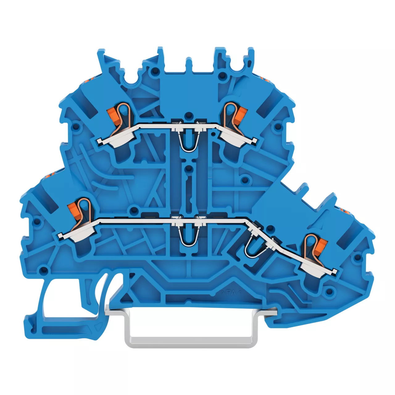 złączka 2-piętrowa; z przyciskami; złączka przelotowa/przelotowa; N/N; bez podstawki oznacznika; na szynę TS 35 x 15 i 35 x 7,5; 1 mm²; Push-in CAGE CLAMP®; 1,00 mm²; niebieski