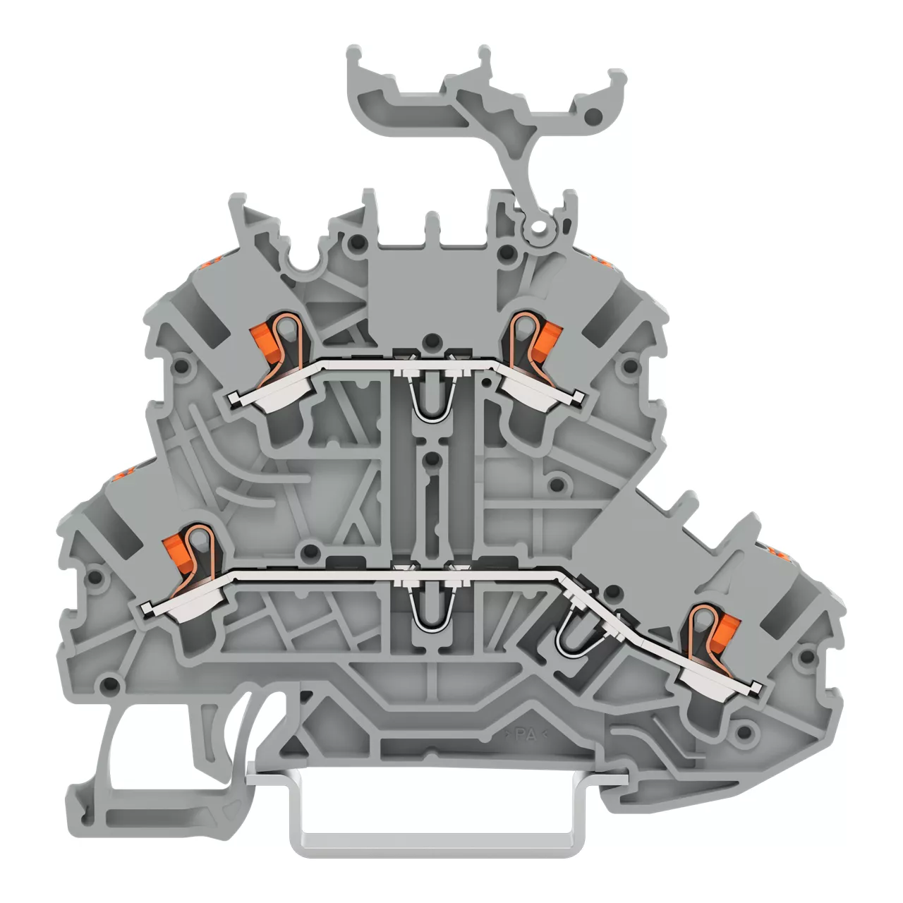 złączka 2-piętrowa; z przyciskami; złączka przelotowa/przelotowa; L/L; z podstawką oznacznika; na szynę TS 35 x 15 i 35 x 7,5; 1 mm²; Push-in CAGE CLAMP®; 1,00 mm²; szary
