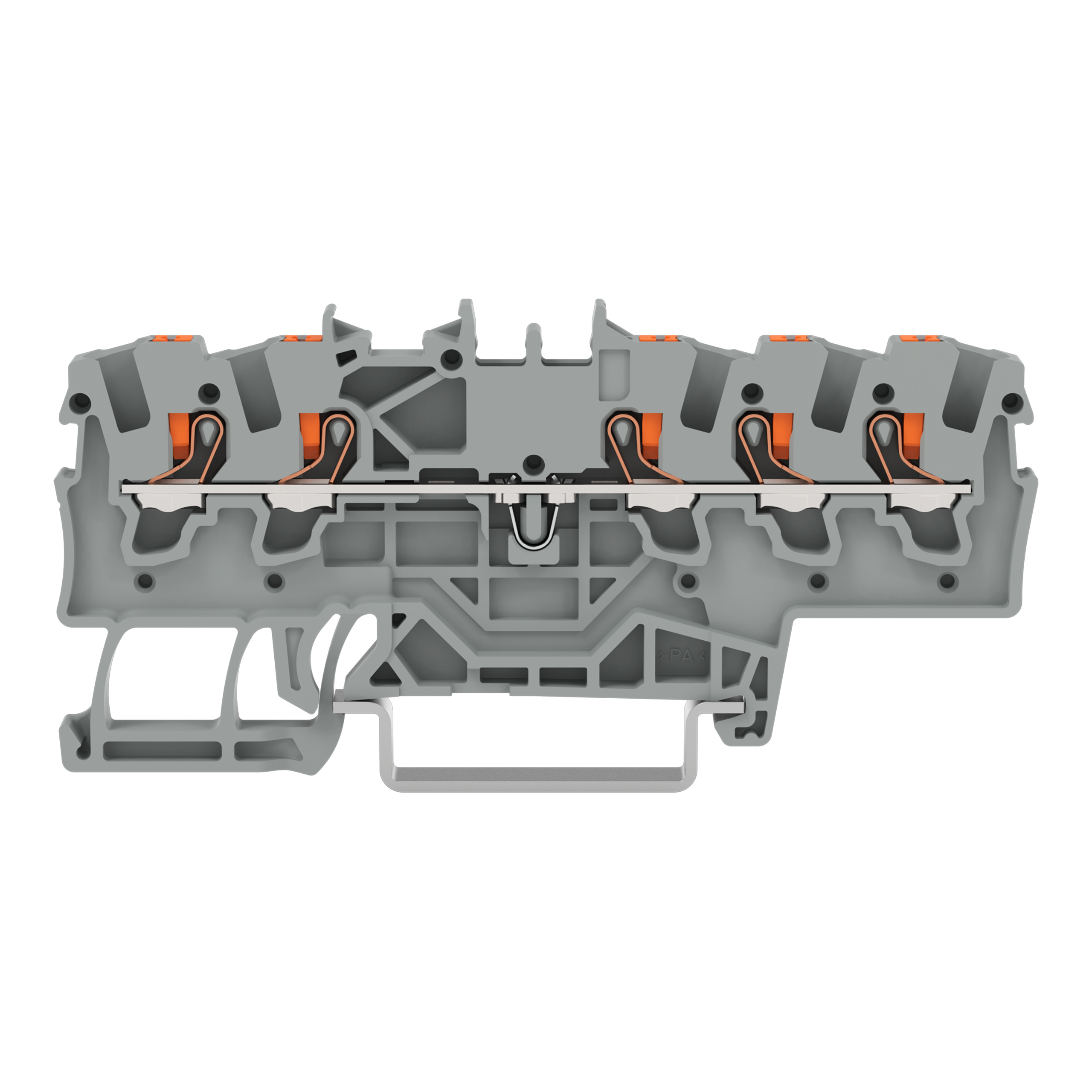 złączka przelotowa; 5-przewodowa; z przyciskami; 1,5 mm²; z otworem pomiarowym; do zastosowań Ex e II; opis z boku i na środku; na szynę TS 35 x 15 i 35 x 7,5; Push-in CAGE CLAMP®; 1,50 mm²; szary