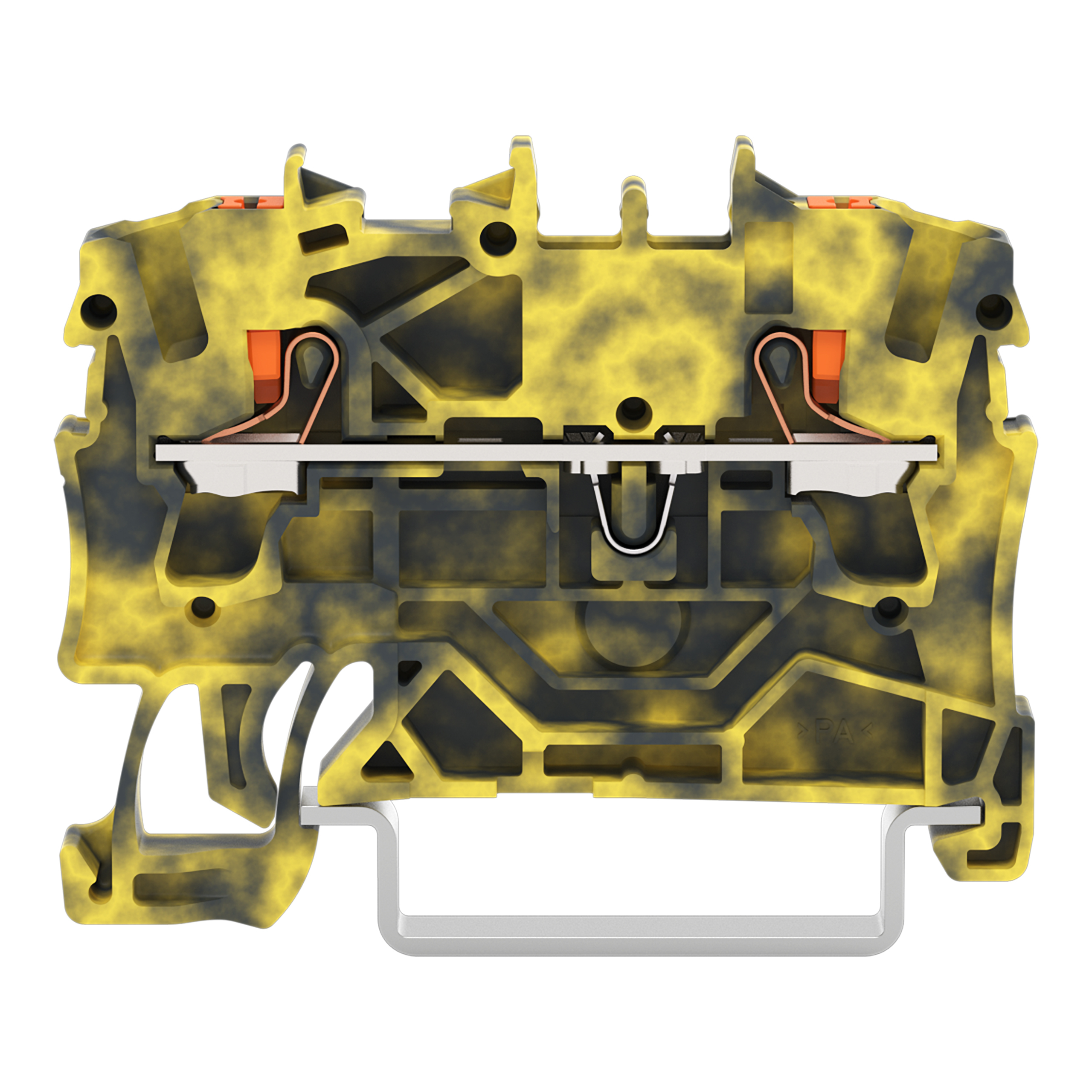 złączka przelotowa 2-przewodowa; z przyciskami; 2,5 mm²; z otworem pomiarowym; do zastosowań Ex e II; opis z boku i na środku; na szynę TS 35 x 15 i 35 x 7,5; Push-in CAGE CLAMP®; 2,50 mm²; ciemnoszary-żółty
