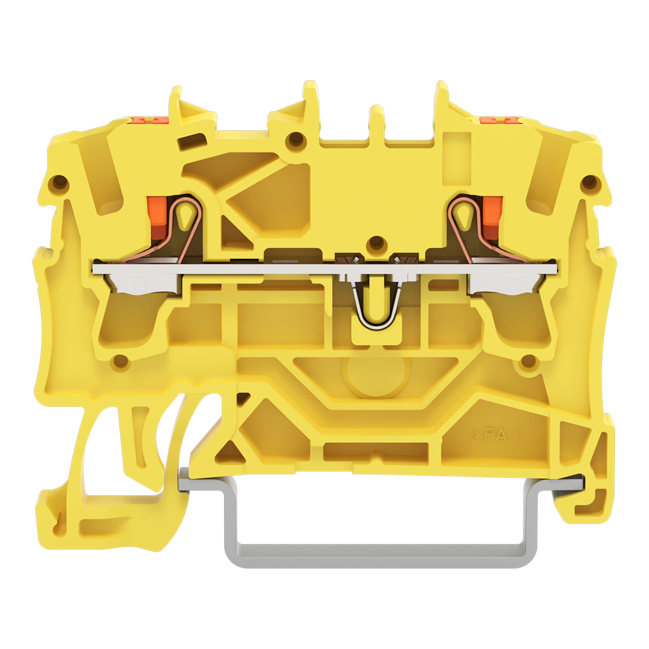 złączka przelotowa 2-przewodowa; z przyciskami; 2,5 mm²; z otworem pomiarowym; do zastosowań Ex e II; opis z boku i na środku; na szynę TS 35 x 15 i 35 x 7,5; Push-in CAGE CLAMP®; 2,50 mm²; żółty