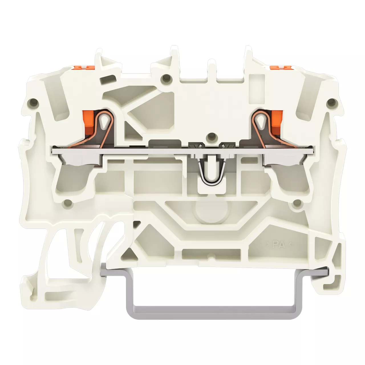 złączka przelotowa 2-przewodowa; z przyciskami; 2,5 mm²; z otworem pomiarowym; do zastosowań Ex e II; opis z boku i na środku; na szynę TS 35 x 15 i 35 x 7,5; Push-in CAGE CLAMP®; 2,50 mm²; jasnoszary
