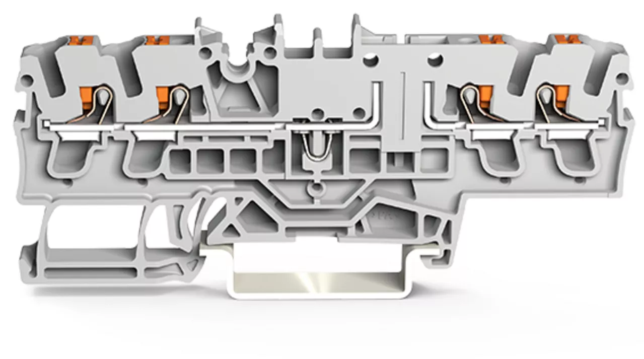 złączka bazowa 4-przewodowa; z przyciskami; na szynę TS 35 x 15 i 35 x 7,5; 2,5 mm²; Push-in CAGE CLAMP®; 2,50 mm²; szary