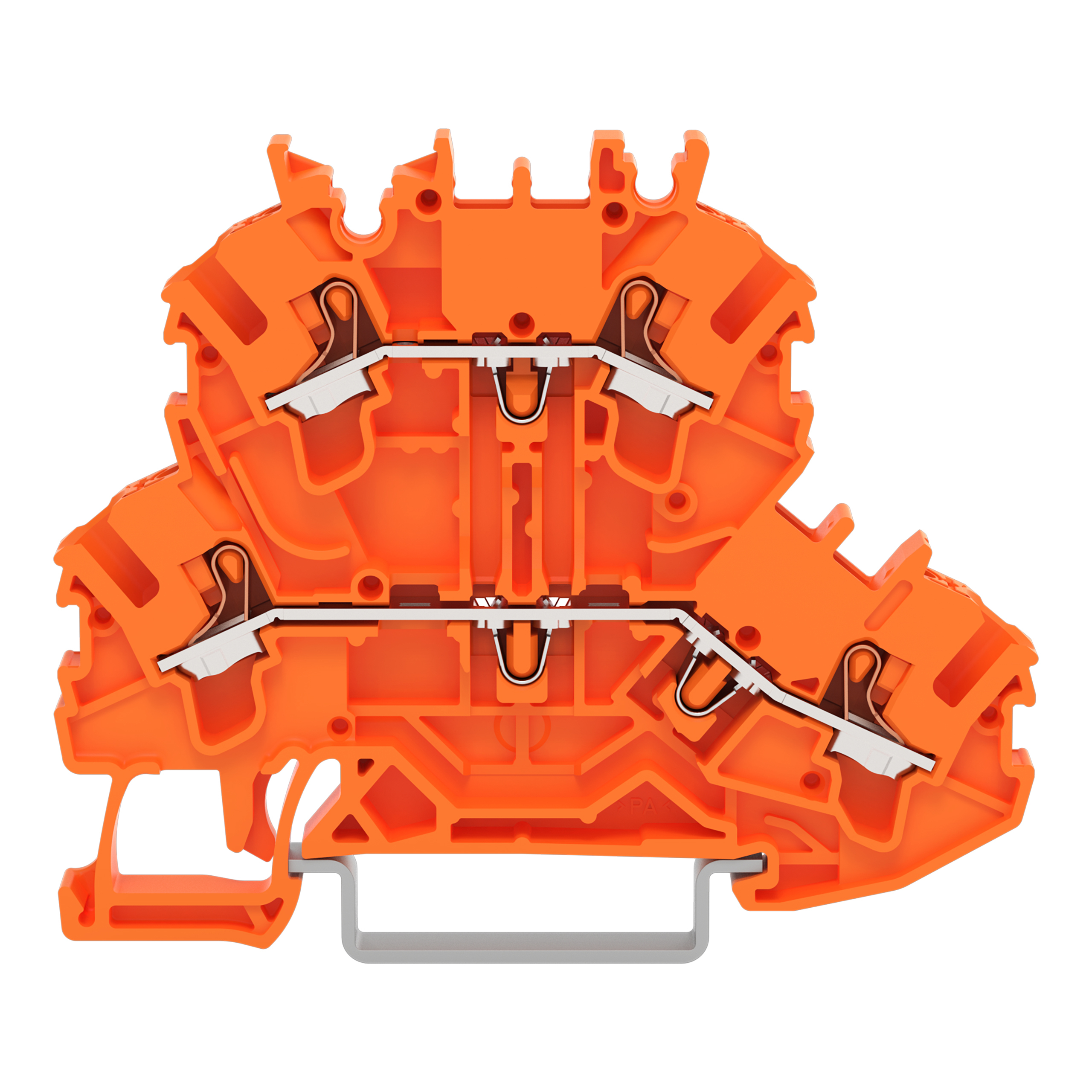 złączka 2-piętrowa; z przyciskami; złączka przelotowa/przelotowa; bez podstawki oznacznika; do zastosowań Ex e II; na szynę TS 35 x 15 i 35 x 7,5; 2,5 mm²; Push-in CAGE CLAMP®; 2,50 mm²; pomarańczowy