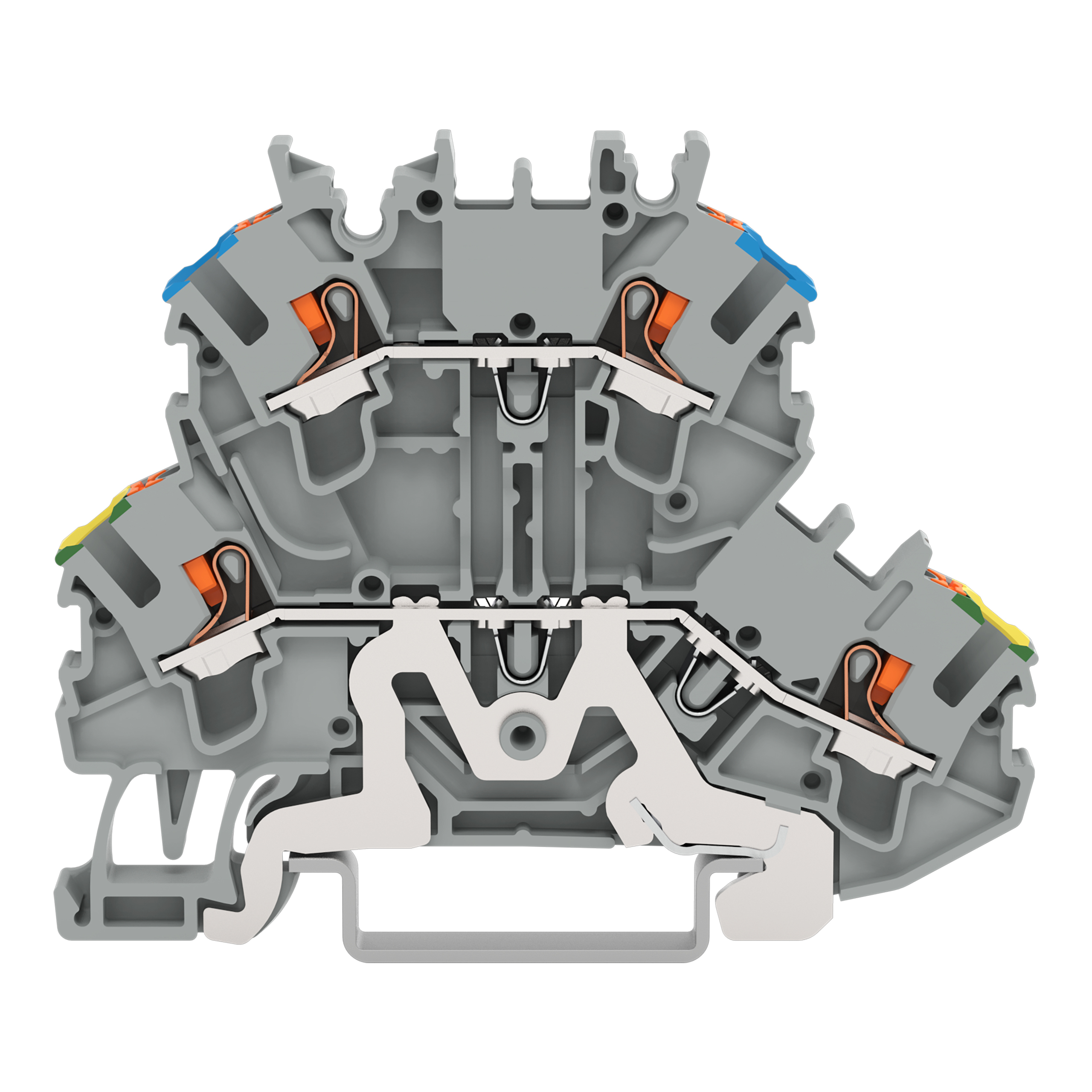 złączka 2-piętrowa; złączka PE/przelotowa; z przyciskami; 2,5 mm²; PE/N; do zastosowań Ex e II; bez podstawki oznacznika; na szynę TS 35 x 15 i 35 x 7,5; Push-in CAGE CLAMP®; 2,50 mm²; szary