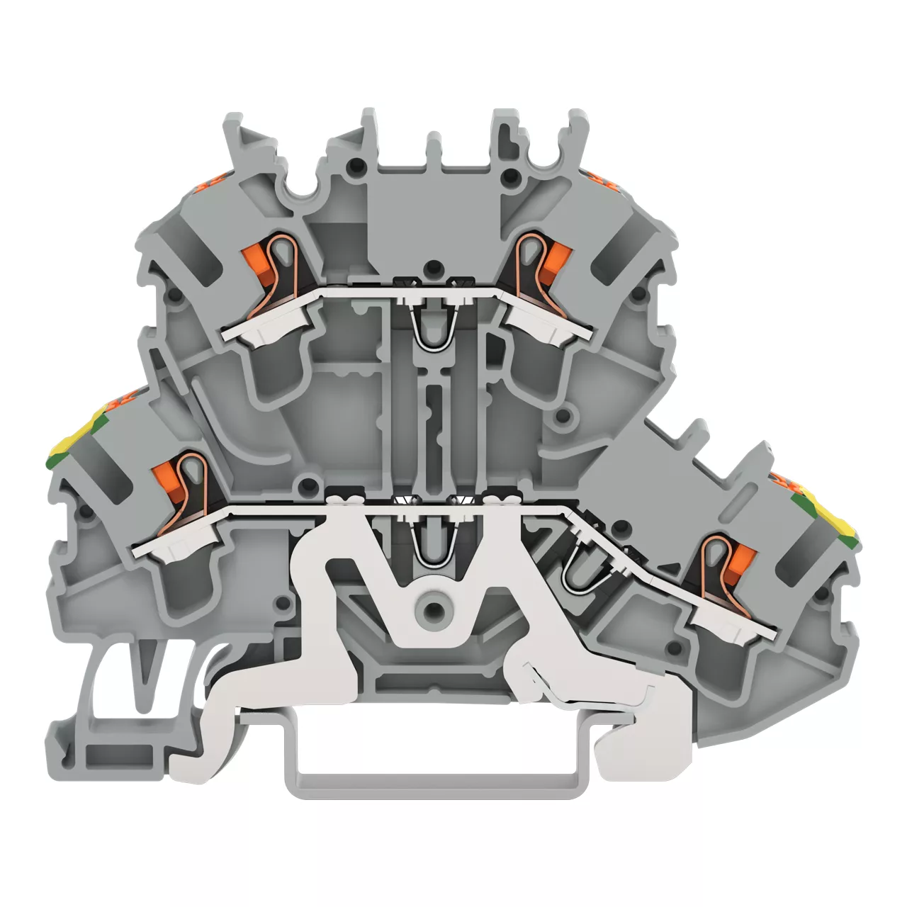 złączka 2-piętrowa; złączka PE/przelotowa; z przyciskami; 2,5 mm²; PE/L; do zastosowań Ex e II; bez podstawki oznacznika; na szynę TS 35 x 15 i 35 x 7,5; Push-in CAGE CLAMP®; 2,50 mm²; szary